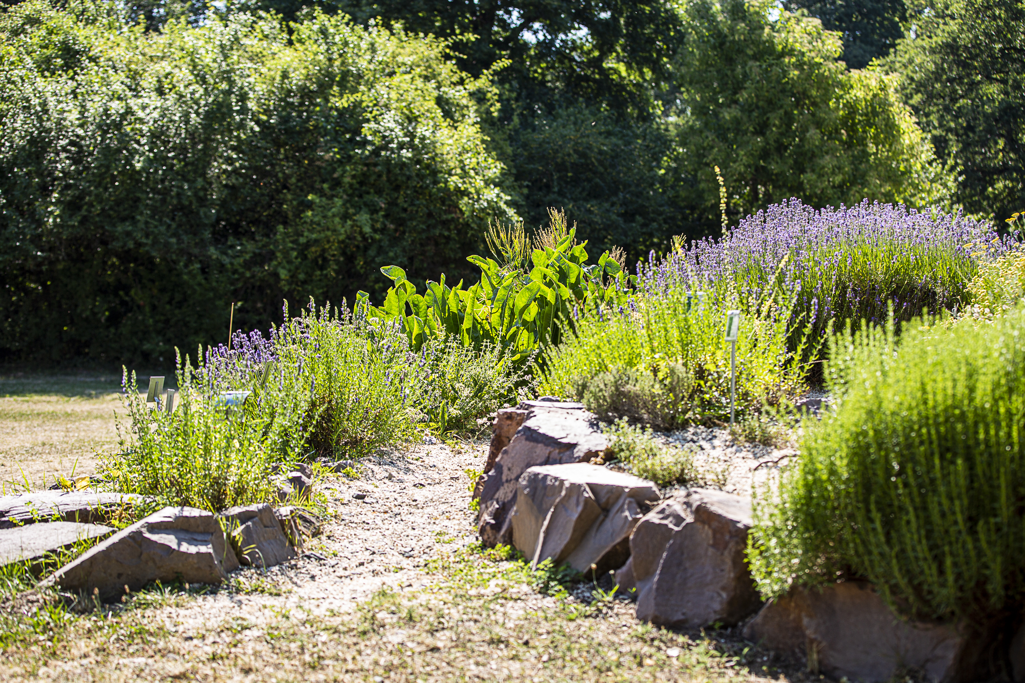- Vor Ort gibt es rund 150 verschiedene Pflanzen, die genutzt und geerntet werden können. Diese sind angelegt in einer begehbaren Kräuterspirale, einem Gemüsegarten, einem „Beerenparadies“ und vielen regionalen Obstbaumsorten. Die Pflanzen sind mit Schildern und Hinweisen ausgestattet.